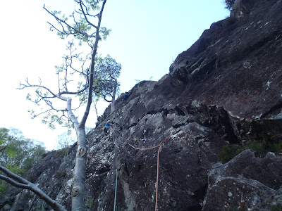 Due to the current climate the walk in was much sweatier than normal. While walking in we saw a team on our intended route Crocodile (E3 5c***). Which was handy for getting all the beta.